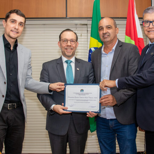 Vereador Marquinhos (PSC) compareceu à sede da instituição nesta terça para entregar a honraria ao procurador-geral do Estado, Márcio Vicari A Procuradoria-Geral do Estado de Santa Catarina (PGE/SC) recebeu nesta terça-feira, 22, uma moção de aplauso concedida pela Câmara Municipal de Florianópolis (CMF). A honraria, entregue pelo vereador Marquinhos (PSC), […]