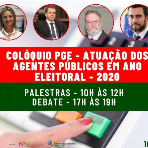 A Procuradoria-Geral do Estado de Santa Catarina (PGE/SC), por meio do Centro de Estudos (Cest), promove, nesta quarta-feira, 10 de junho, um colóquio online para tratar da atuação dos agentes públicos em ano eleitoral. O evento será transmitido pelo canal oficial da PGE de Santa Catarina no Youtube. Os debates […]