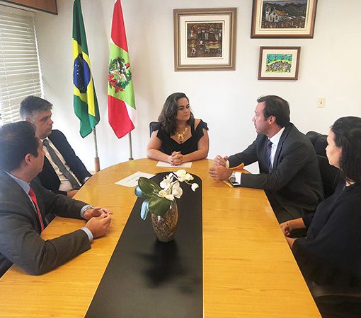 A procuradora-geral do Estado, Célia Iraci da Cunha, e o procurador-geral adjunto para Assuntos Jurídicos, Eduardo Zanatta Brandeburgo, receberam o presidente do Instituto Estadual do Meio Ambiente (IMA/SC), Valdez Rodrigues Venâncio, nesta terça-feira, 12, em Florianópolis, para uma visita de cortesia.