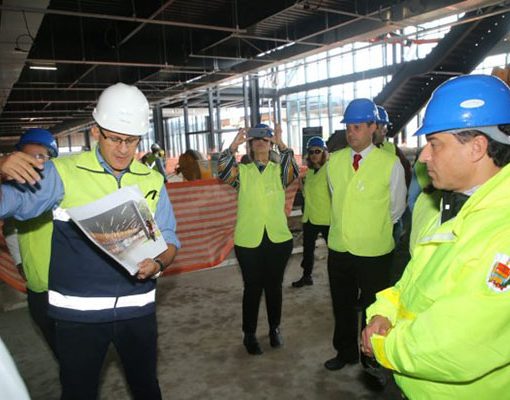 O governador Carlos Moisés, a procuradora-geral do Estado, Célia Iraci da Cunha, os secretários Carlos Hassler (Infraestrutura) e Paulo Eli (Fazenda) e o presidente do Instituto do Meio Ambiente (IMA), Valdez Rodrigues Venâncio, visitaram as obras do novo terminal do Aeroporto Internacional Hercílio Luz, em Florianópolis, nesta segunda-feira, 18.