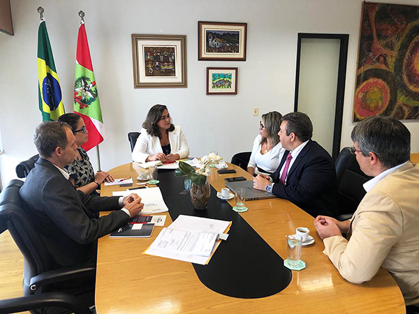 Participaram da reunião também a procuradora-chefe da Consultoria Jurídica da PGE, Queila de Araújo Duarte Vahl; o presidente da Acif, Rodrigo Rossoni; e a diretora de Mediação da CMAA, Rissiane Goulart. O presidente Rodrigo Rossoni convidou a equipe da PGE para participar de uma reunião da diretoria executiva da Acif e conhecer as instalações da CMAA.
