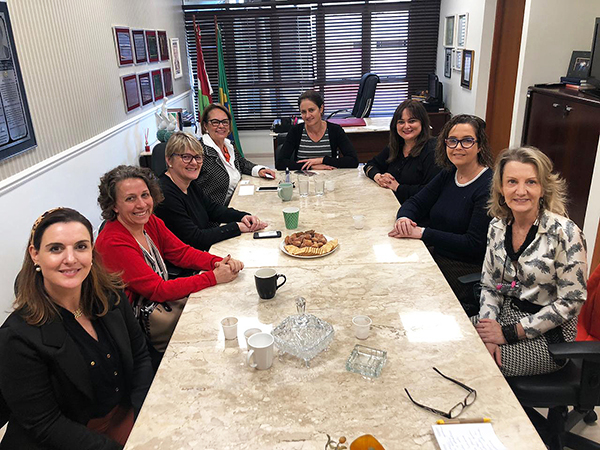 Representando a PGE, além da procuradora-geral, participaram do encontro a corregedora-geral, Rejane Maria Bertoli; a procuradora-chefe da Procuradoria Fiscal, Elenise Magnus Hendler; a procuradora-chefe da Consultoria Jurídica, Queila de Araújo Duarte Vahl; e a procuradora do Estado que atua no gabinete da PGE, Carla Schmitz de Schmitz.