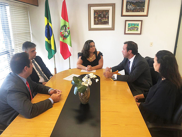 Participaram ainda da reunião o procurador-geral adjunto para Assuntos Administrativos, Fernando Mangrich Ferreira, e a presidente da Associação dos Procuradores do Estado (Aproesc), Fabiana Guardini Nogueira, que também é conselheira estadual da OAB.
